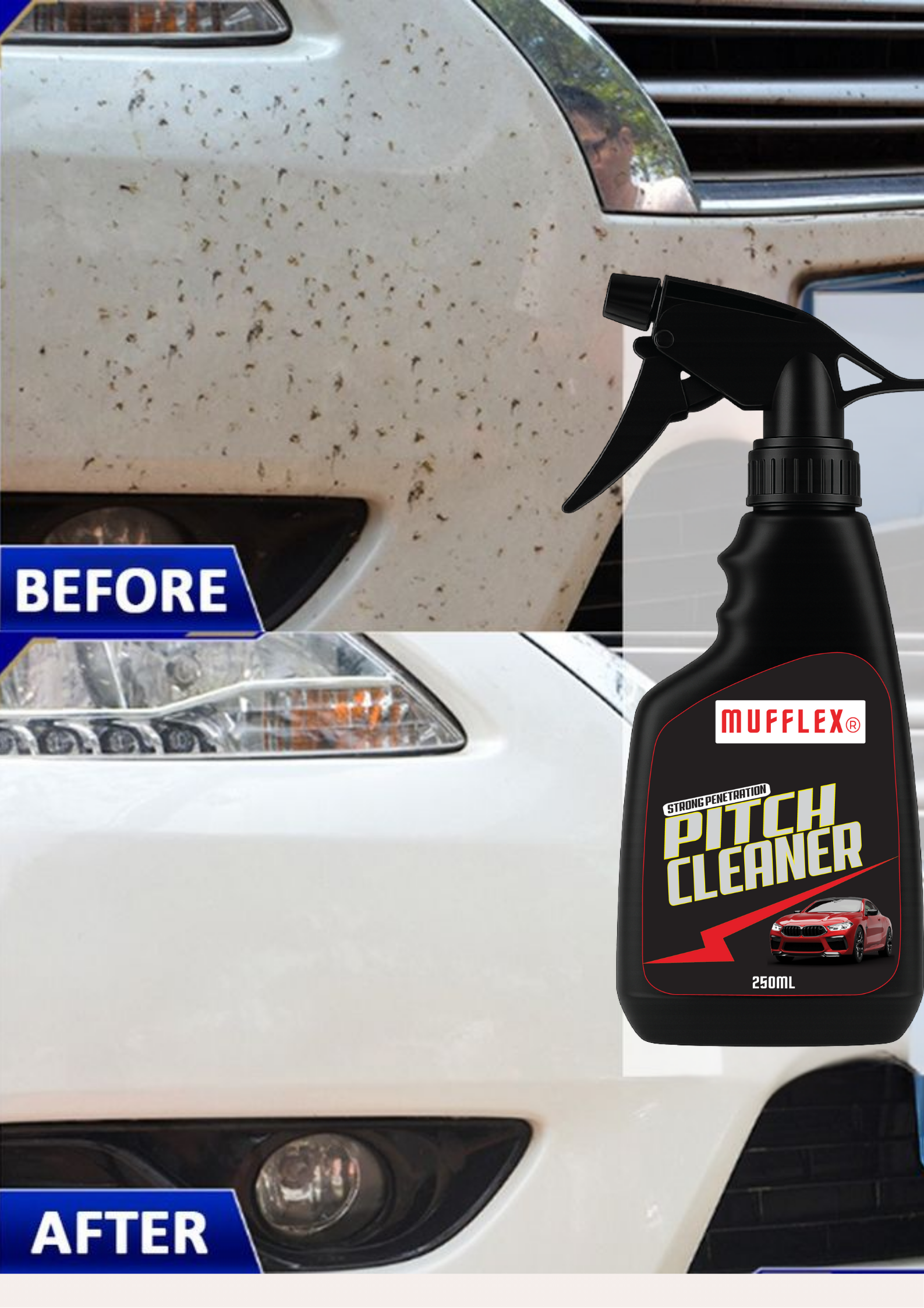 Introducing Mufflex Pitch Cleaner, a high-performance formula designed to remove stubborn tar spots, pitch, road grime, grease, and industrial stains in seconds — without damaging paint or metal surfaces.